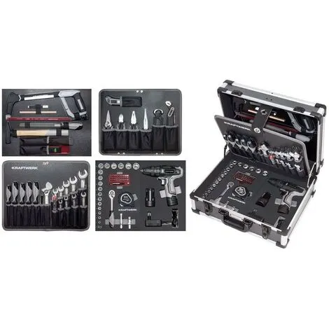- La mallette à outils Kraftwerk B147 contient une perceuse sans fil Li-Ion 12 volts / 1500 mAh et un chargeur enfichable.
