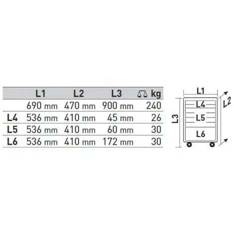 - Verrouillage centralisé de tous les tiroirs par serrure cylindrique